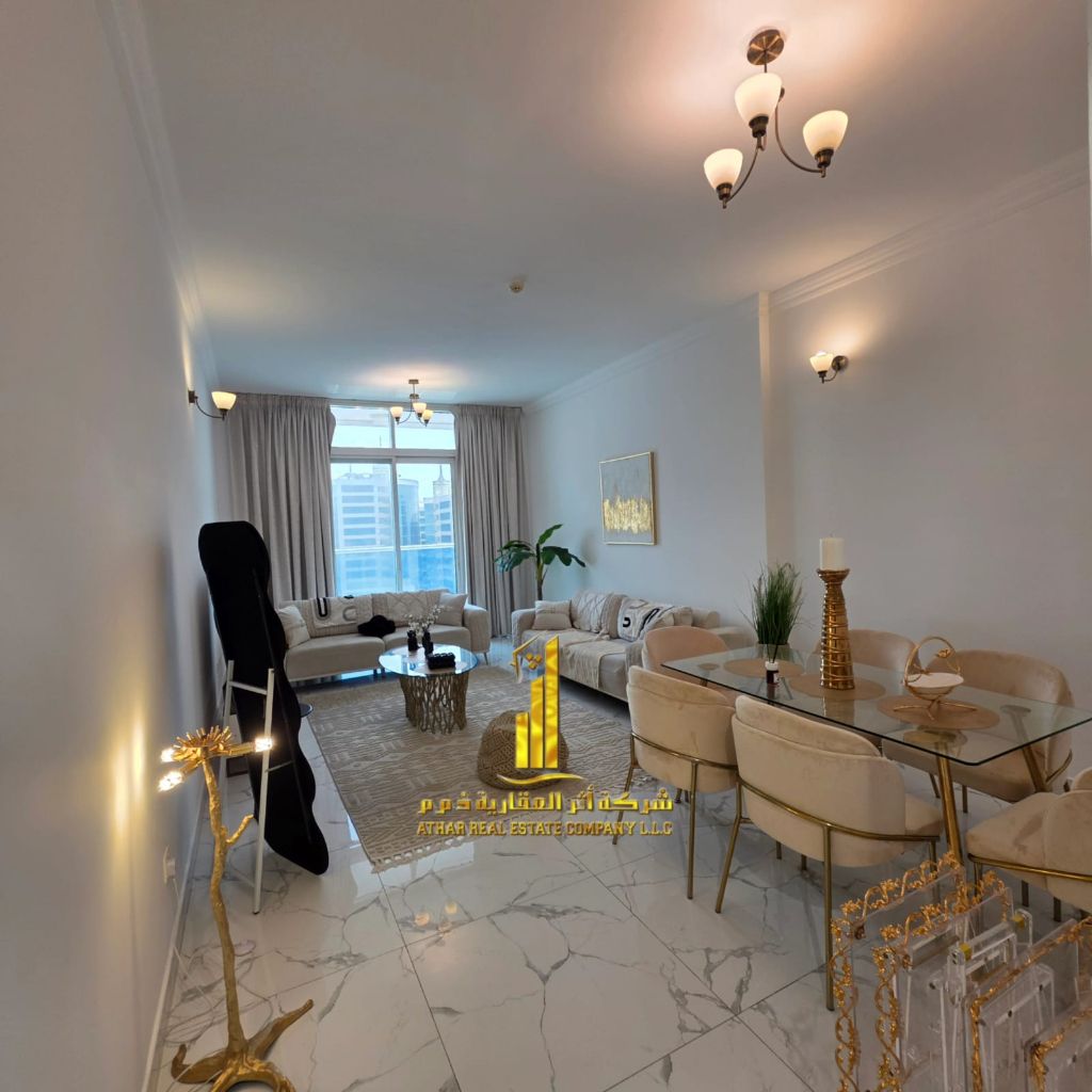 شقة للإيجار في عجمان - برج الواحة غرفتين وصالة بتصميم مريح وتشطيب ممتاز يوجد جيم ومسبح داخل البرج لراحة السكان موقع مميز قريب من جميع الخدمات والمرافق مناسبة للعائلات وبسعر مناسب