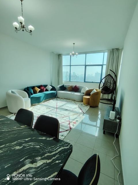 للإيجار الشهري في عجمان بمنطقة الراشدية شقة غرفتين وصالة أول ساكن بتشطيب راقي مفروشة فرش نظيف ومرتب في قمة الفخامة والرقي مساحة واسعه تكييف مركزي مطبخ منفصل 2 حمام برج نظيف جدا على شارع خليفة الرئيسي بجوار جسر غلفا منطقة حيوية جدا بها جميع الخدمات من كافيهات ومطاعم وسوبر ماركت سهل المدخل والمخرج لدبي والشارقة وطريق مدينة محمد بن زايد السعر 5800 شامله جميع الفواتير مع الانترنت للتواصل واتساب أو اتصال