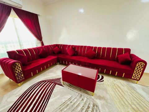 Two - bedroom apartment, living room, No. 305 Ajman, Al Al Nuaimia 2 area Al Al Nuaimia Street The street separating Ajman and Sharjah Near Al Sinara Roundabout Opposite the Indian Model School Two - bedroom apartment fully furnished with brand new furniture One bathroom - Balcony - Central air conditioning monthly rent AED4500 Includes all bills, internet, and maintenance (excluding gas) Refundable security