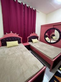 Apartment two rooms and a hall for monthly rent in Ajman, the Unique Towers, Al Naima Towers, Khalifa Street, opposite the Ramada Black Hotel, very clean furniture, an integrated kitchen with all modern electrical appliances and complete tools, central air conditioning, private parking, a large area and a privileged location close to all services, restaurants, cafes, malls, etc. and facilitated th