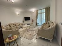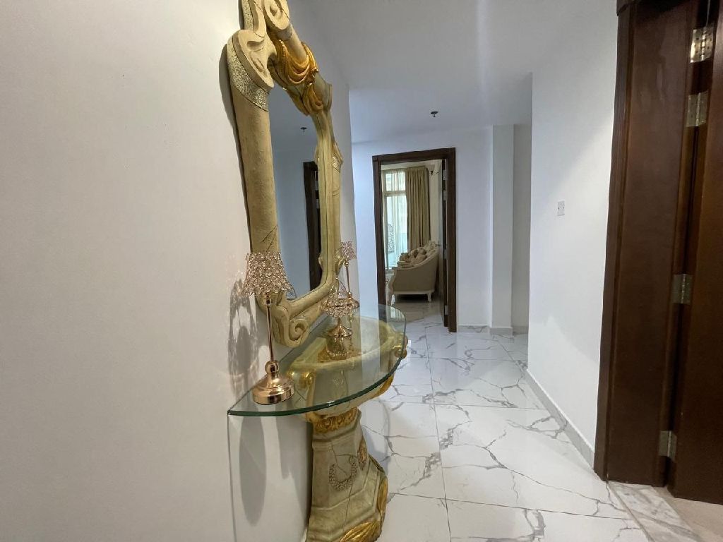 Hotel apartment for monthly rent in Oasis Tower 1 - GJ Properties, Ajman. The Oasis Tower features two bedrooms, a large living room, and two bathrooms. The apartment is super deluxe, and the tower is the most prestigious in Ajman, renowned for its swimming pool, gym, and parking. The price is AED6000 per month