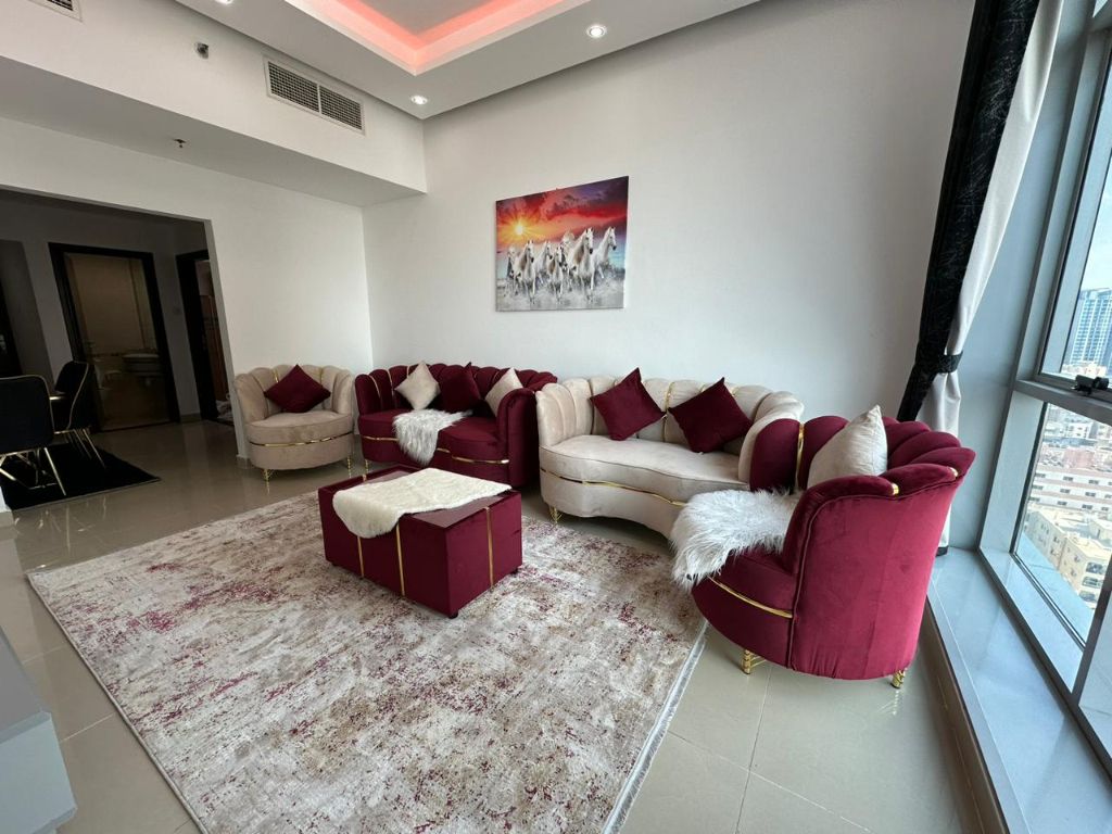 The most beautiful apartment with the largest area, one bedroom and a hall (first occupant) furnished with very elegant hotel furnishings, a distinctive sea view, an easy exit location to Sharjah and Dubai, and close to all services. Ajman - Corniche - Opposite Bahi Ajman Hotel rent 4800 Including all bills, internet, and maintenance Details and features Clean and tidy furniture Excellent finishes