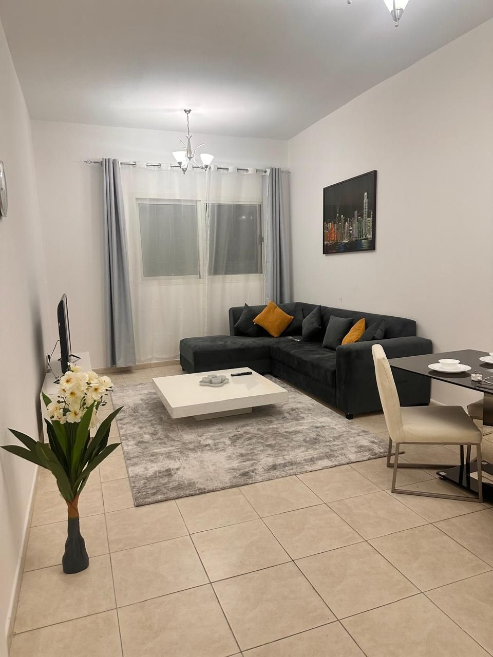 Furnished one - bedroom apartment for monthly rent in Ajman Second row on Ajman Corniche Directly on the Diwan Roundabout Close to all amenities and easy access to Dubai and Sharjah First tenant Clean furniture, all bills included, and parking inside the tower AED5000 per month AED500 refundable security deposit upon checkout