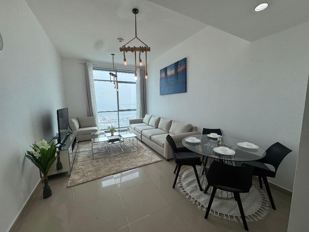 A fully furnished one - bedroom apartment for monthly rent on Ajman Corniche with a sea view. The apartment comes fully furnished and has a fully equipped kitchen. The location is prime, offering easy access to all services and amenities. The rent includes all bills and internet