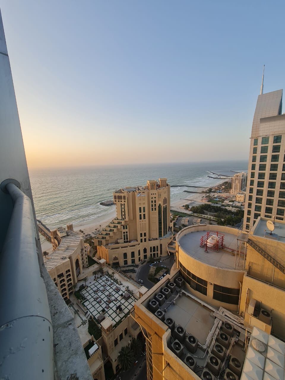 Three super deluxe bedrooms and a hall with a distinctive sea view, Ajman Corniche, including internet, electricity, and water. Parking is included. First tenant. rent 11000