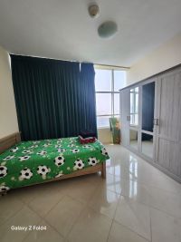 For monthly rent in Ajman Orient Towers 2 room apartment, 2 bathroom large space hotel brushes European style cleanliness and luxury finishing Super Deluxe Smart Internet screen including all bills and internet with Parking, gym, swimming pool, garden and mosque All services are free
