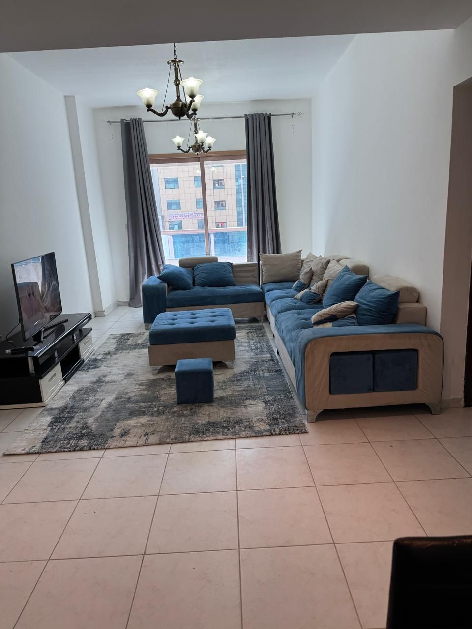 For monthly rent in Ajman, Rashidiya 3, on Sheikh Khalifa Street, opposite Dubai Islamic Bank. Available One - bedroom and living room model, fully furnished, with a balcony. The price is very special, including all bills and internet