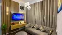Furnished apartment, one bedroom and a hall, new furniture, Garden City Towers, Al - Hamidia, close to Etisalat, opposite the court, price 3700, including bills and internet, with private parking