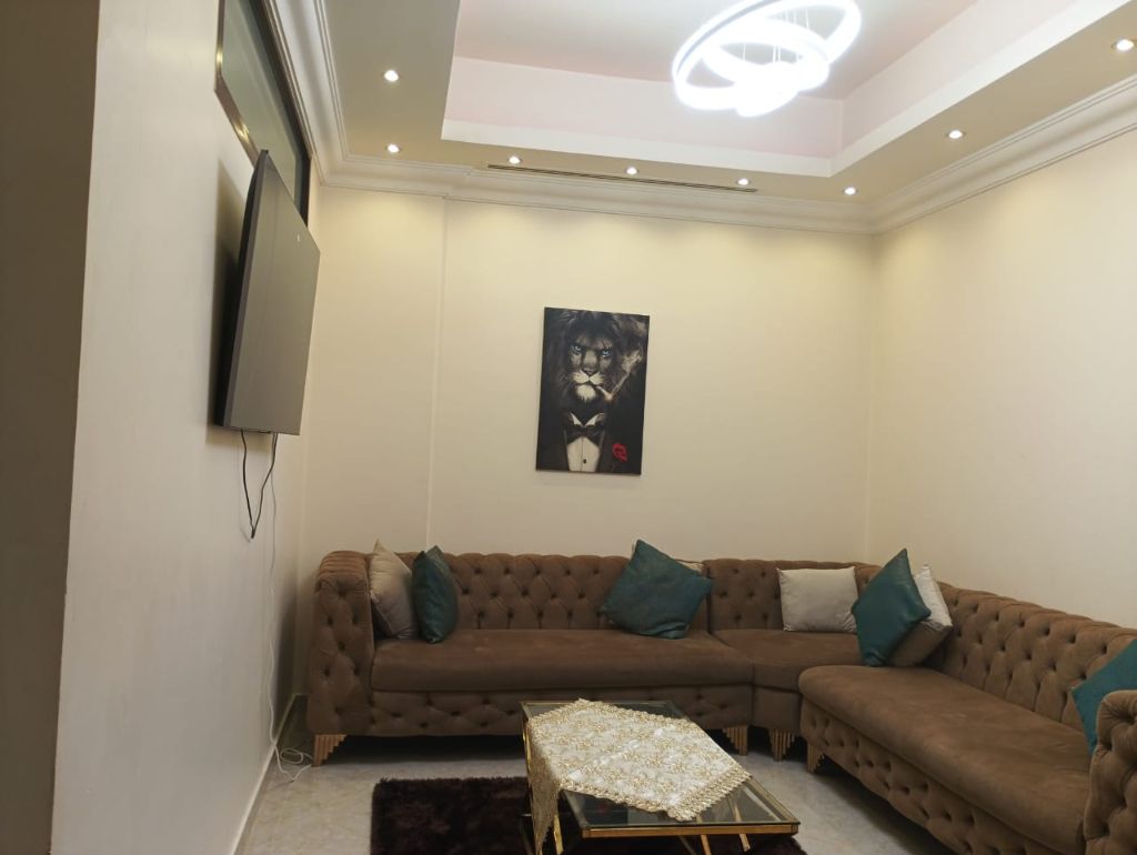 Two rooms and a hall, new furniture, large area in Al Rawda, Ajman, including all bills, free parking, distinguished location, easy exit to Dubai 5000