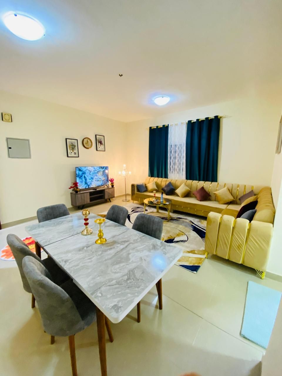 For monthly rent in Ajman, a room and a hall on King Faisal Street, Ajman, elegantly furnished and tidy, a distinguished location close to all services, including all bills
