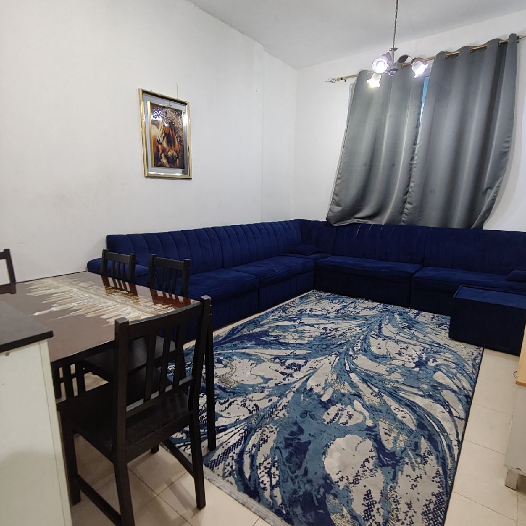 For rent in Ajman, a furnished apartment, one room and a hall, a distinguished location, City Towers, Khalifa Street, close to Safeer Mall and opposite Grand Mall, clean and tidy furniture, 2 bathrooms with a balcony, the apartment is fully equipped with all household appliances, easy exit to Dubai and Sharjah, the price is 3200, including bills and internet