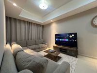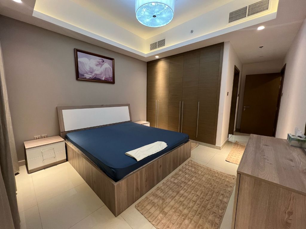 For rent in Ajman, a furnished apartment with one bedroom and a hall on Khalifa Street, Gulf Tower. A very upscale tower, one of the finest in Ajman. The apartment is fully equipped with all household appliances, has 2 bathrooms, and a balcony. A gym, swimming pool, and children'play area are available for free. There is a private parking 5000