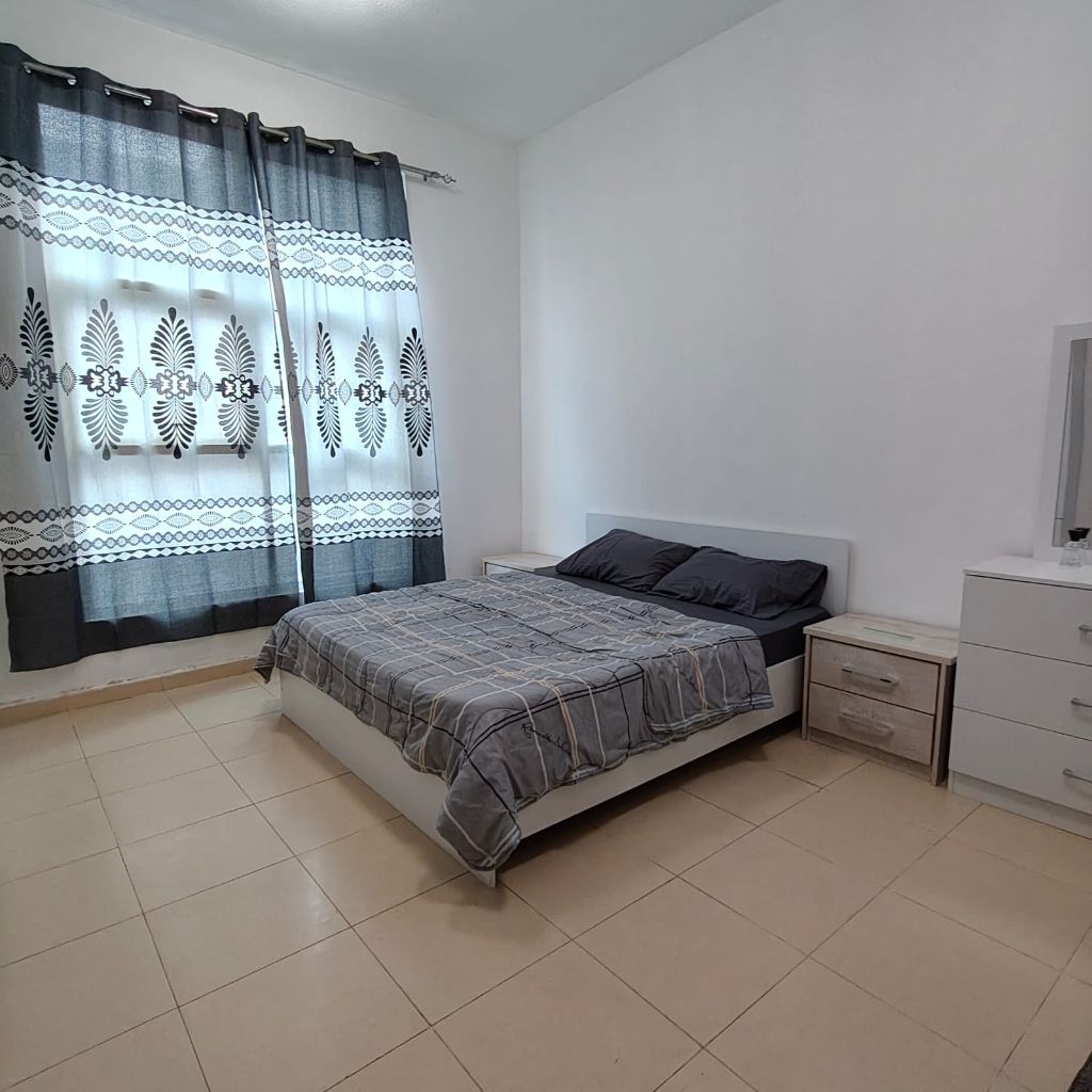 For annual rent furnished in Ajman, an apartment with one bedroom and a living room in a prime location on Khalifa Street, City Tower Towers, close to Safir Mall and opposite Grand Mall. It has 2 bathrooms with a balcony, free air conditioning, and easy access to Dubai and Sharjah. The apartment is fully equipped with all household appliances and ready for immediate living, close to all services. The