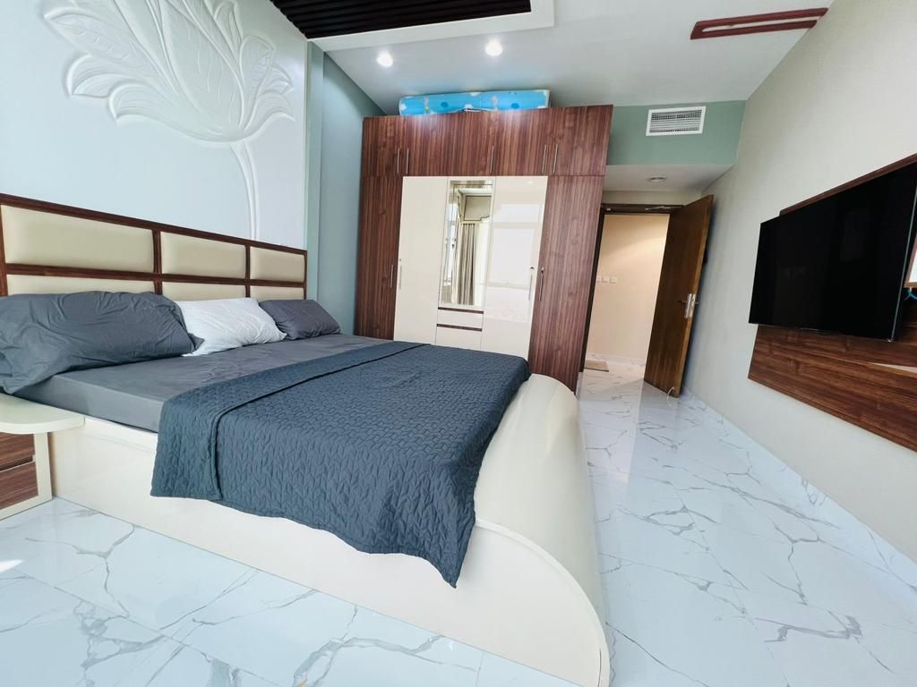 Two rooms and a hall, spacious, furnished, clean and elegant, in Rashidiya Ajman, a distinguished location close to all services, easy exit to Dubai, super deluxe, including internet, electricity and water, parking, gym, Ajman swimming pool, a distinctive view of Al Hoor. rent 6500