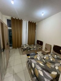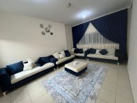Two rooms and a hall in Rashidiya Ajman, spacious area, excellent location, close to all services, easy exit to Dubai and Sharjah, clean and distinctive furniture, 3 master bathrooms + 3 balconies Families only, price 6000 dirhams, including all bills