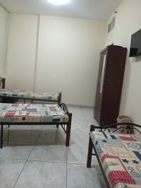 Available now, a bed in a triple room for young men, Ajman staff housing, Rashidiya 3, next to Grand Mall, a new apartment, the first resident, a private screen for each room, 24 - hour cleaning, a distinguished location, the price of the bed is 700 dirhams, including all bills