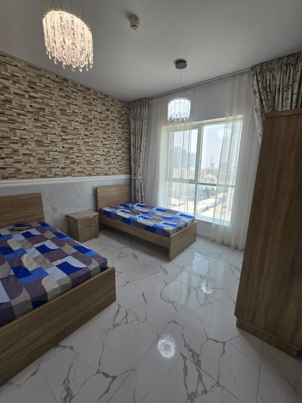 للإيجار الشهري شقة غرفتين وصالة ومطبخ و2 حمام و3 بالكونه اطلالة مفتوحه على الخور والمدينة أبراج الواحة الراشدية 1 بجوار نستو هايبر وجمعية أسواق عجمان شامل الفواتير والانترنت مع باركينج خاص وجيم ومسبح مجاني السعر 6500
