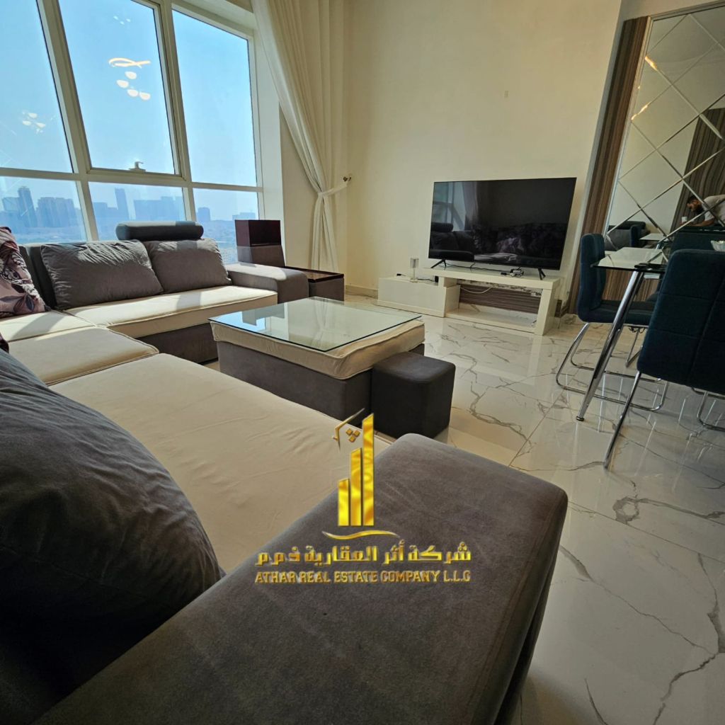 With a distinctive open view of the city, the most luxurious and upscale one - bedroom apartment, fully furnished with new, very elegant furnishings, in a very prime location, including all amenities, a gym, a swimming pool, and private parking. A fully equipped kitchen with everything you need for your daily life. Location Al Waha Towers - Rashidiya Strategic Location In the heart of Rashidiya