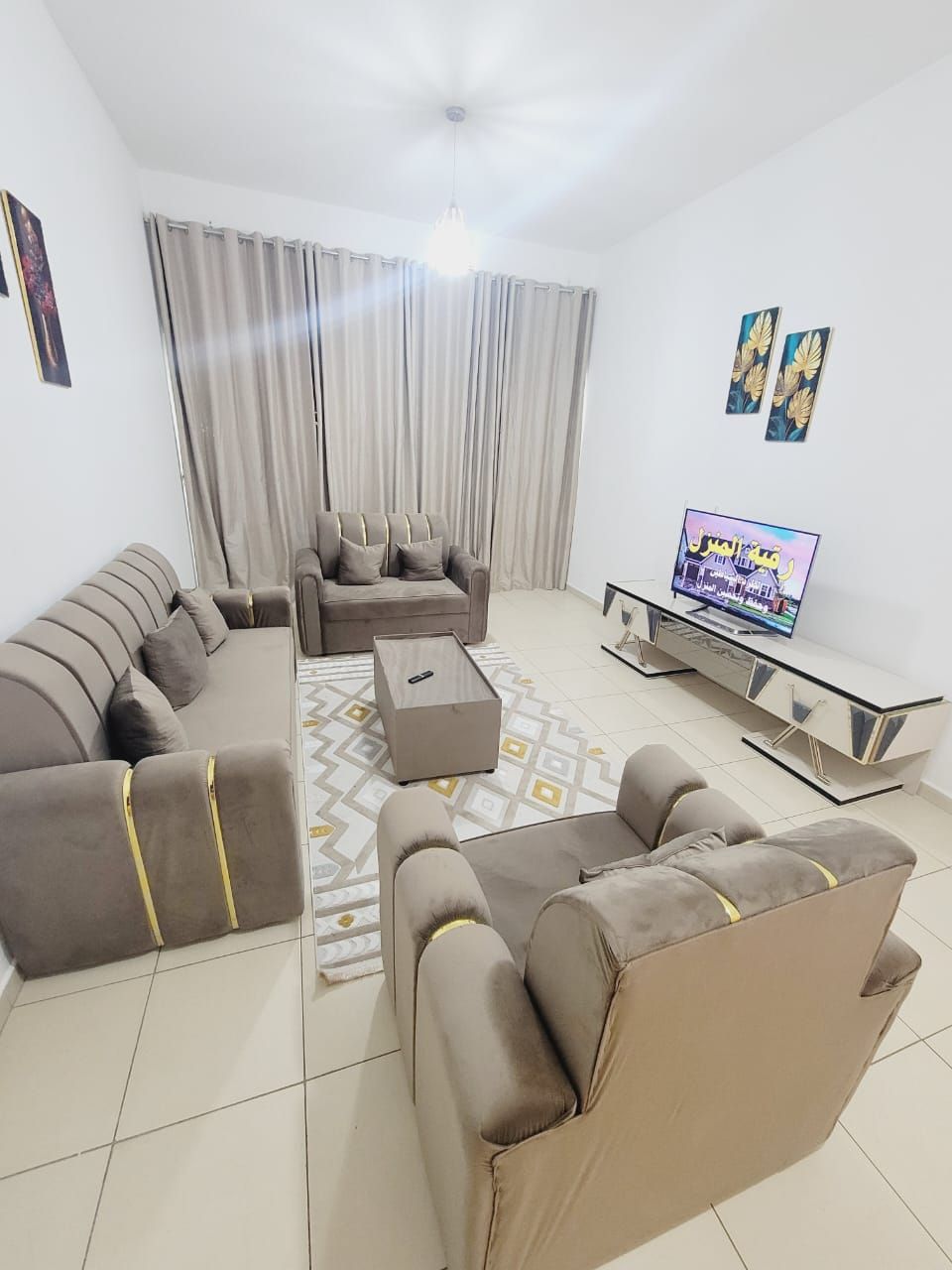 The most luxurious and elegant one - bedroom apartment, fully furnished with new, very elegant furniture, a garden, and free private parking. Property Details One - bedroom apartment (2 bathrooms) with a balcony with a distinctive view. Completely new construction with super deluxe finishes. Kitchen equipped with the latest electrical appliances. Location Ajman One Towers - Rashidiya 3 - Near Ajman