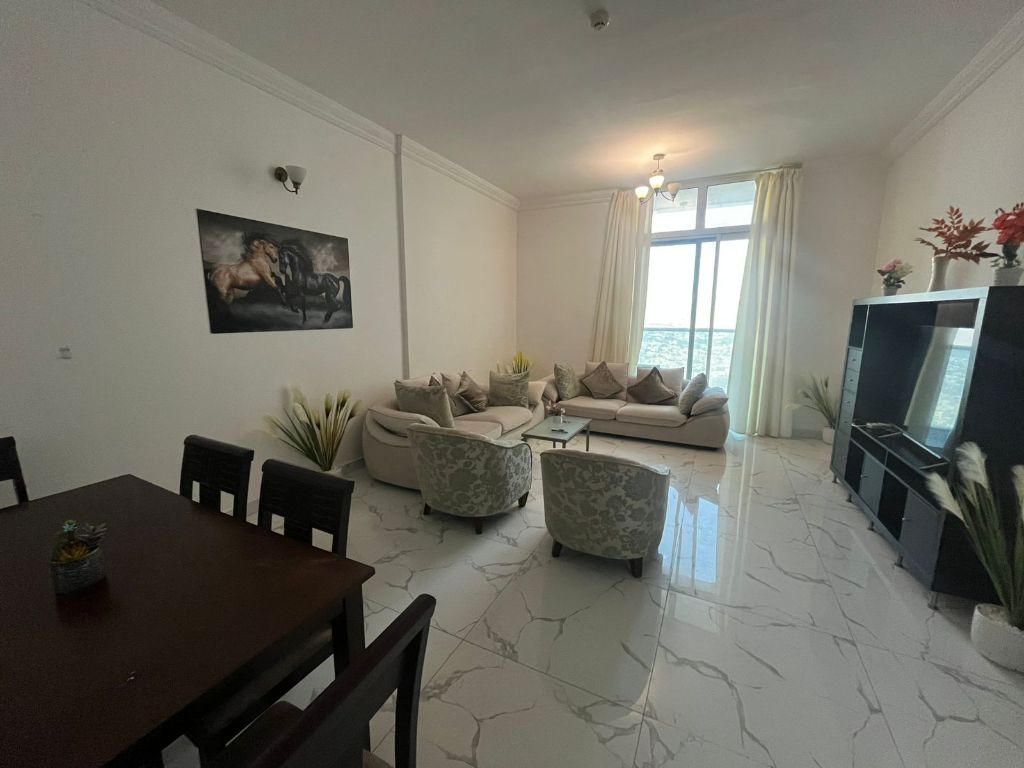 Two bedroom apartment with a living room available for annual rent in Ajman fully furnished Located in Al Waha Towers on Al Mina Street Includes access to gym swimming pool and private parking Annual rent is sixty thousand dirhams