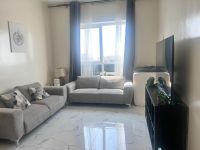 One - bedroom apartment with a spacious living room Furnished with high - quality furniture Located in the new Al Waha Tower on Al Mina Street Prime location close to all services easy access to Dubai and Sharjah Price is four thousand dirhams per month including all bills Free access to gym and swimming pool Free parking included