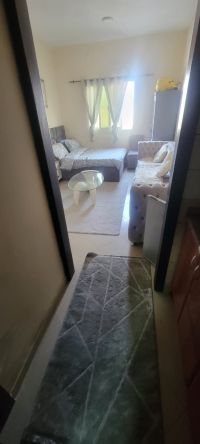 For monthly rent, a furnished studio in Rashidiya - behind the Grand Mall, at a price of 2500, including all bills, without internet