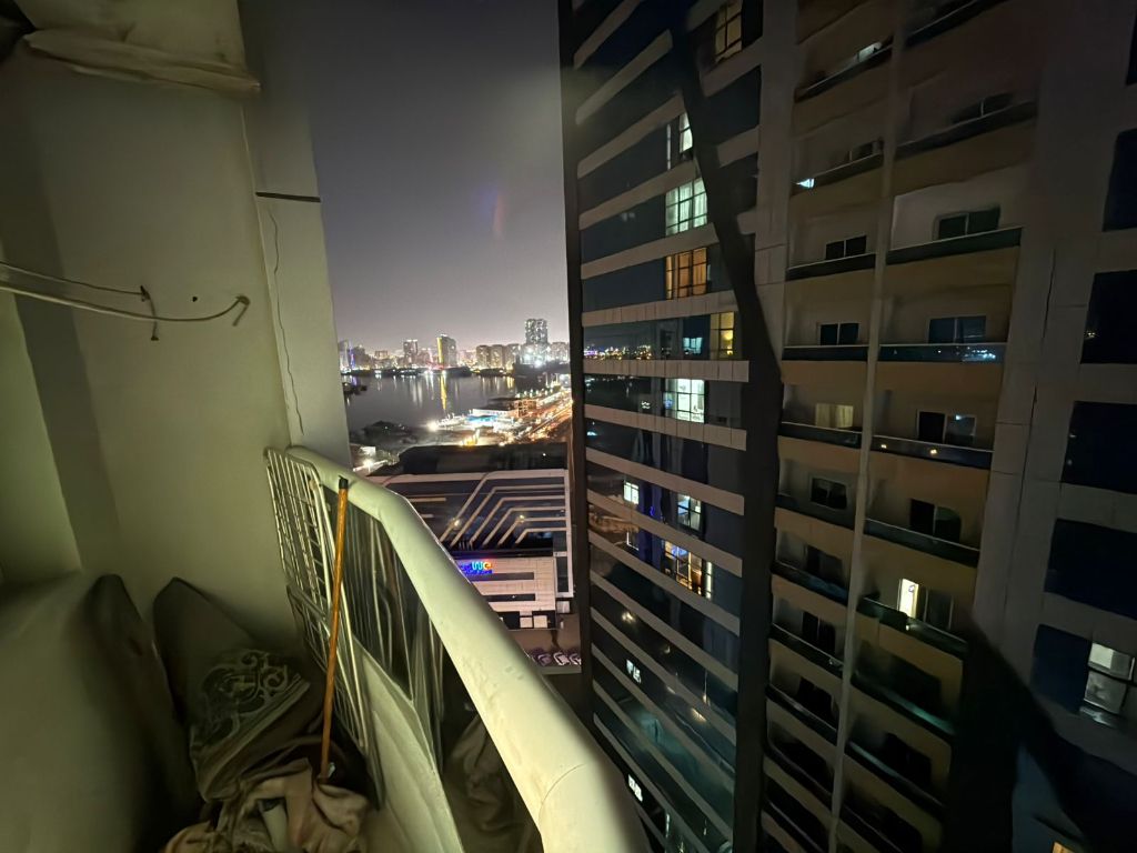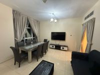 For monthly rent in Ajman, an apartment with two bedrooms, a hall, a balcony, and three bathrooms is available. The price is 5500, including parking, a gym, and a swimming pool. The location is Orient Towers. To contact