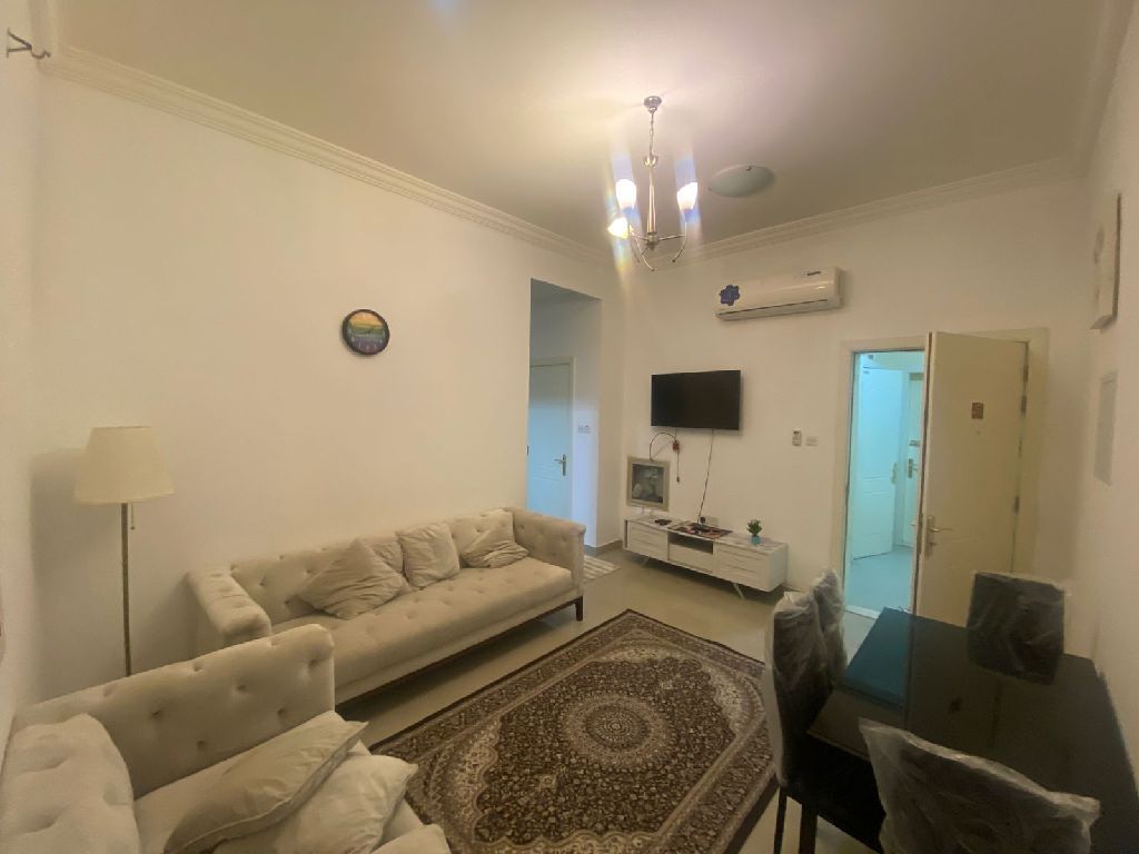 A one - bedroom apartment with a hall and two bathrooms, including a master bedroom, furnished for monthly rent in Ajman, Al Corniche, behind Thamar Al Bahr Restaurant. The price is 3500, including bills and internet. It has all electrical appliances and household supplies, and has an easy exit to Dubai and Sharjah. Contact us. Available at all times