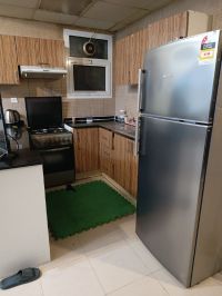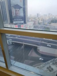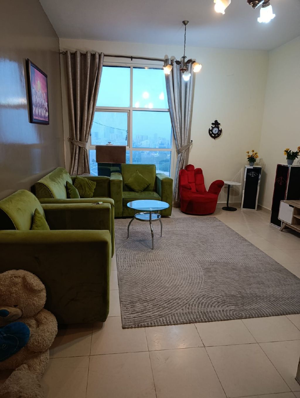 Furnished room and hall for monthly rent in Ajman City Towers. The apartment consists of a master room, an external bathroom, a hall, and a balcony next to Al Safir Mall, close to Verona Roundabout, Sharjah. All bills included