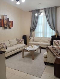 Furnished one - bedroom apartment for monthly rent in Ajman City Towers, opposite Grand Mall and Ladies Park, next to Safeer Mall and the bus station. All services, restaurants, and cafes are nearby. All bills, internet, and parking are included. rent AED3700 Deposit AED500, refundable upon checkout