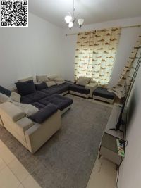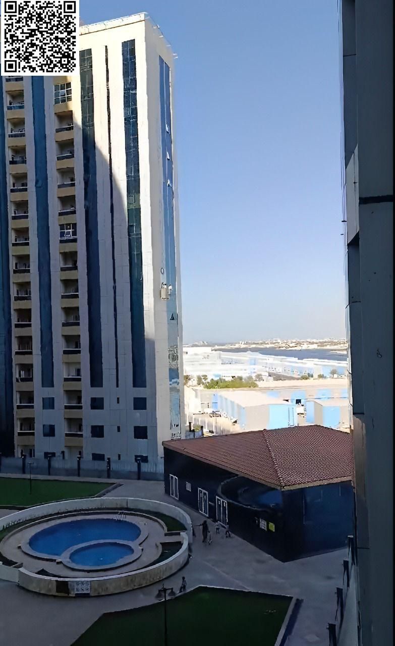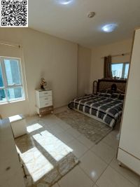 Private parking, a furnished one - bedroom apartment for annual rent in Ajman, Orient Towers on Al Mina Street, with excellent space, central AC, a balcony, clean and tidy furniture, fully equipped with all household appliances, in a prime location close to all services and with easy access to Dubai and Sharjah, price AED37000 annually