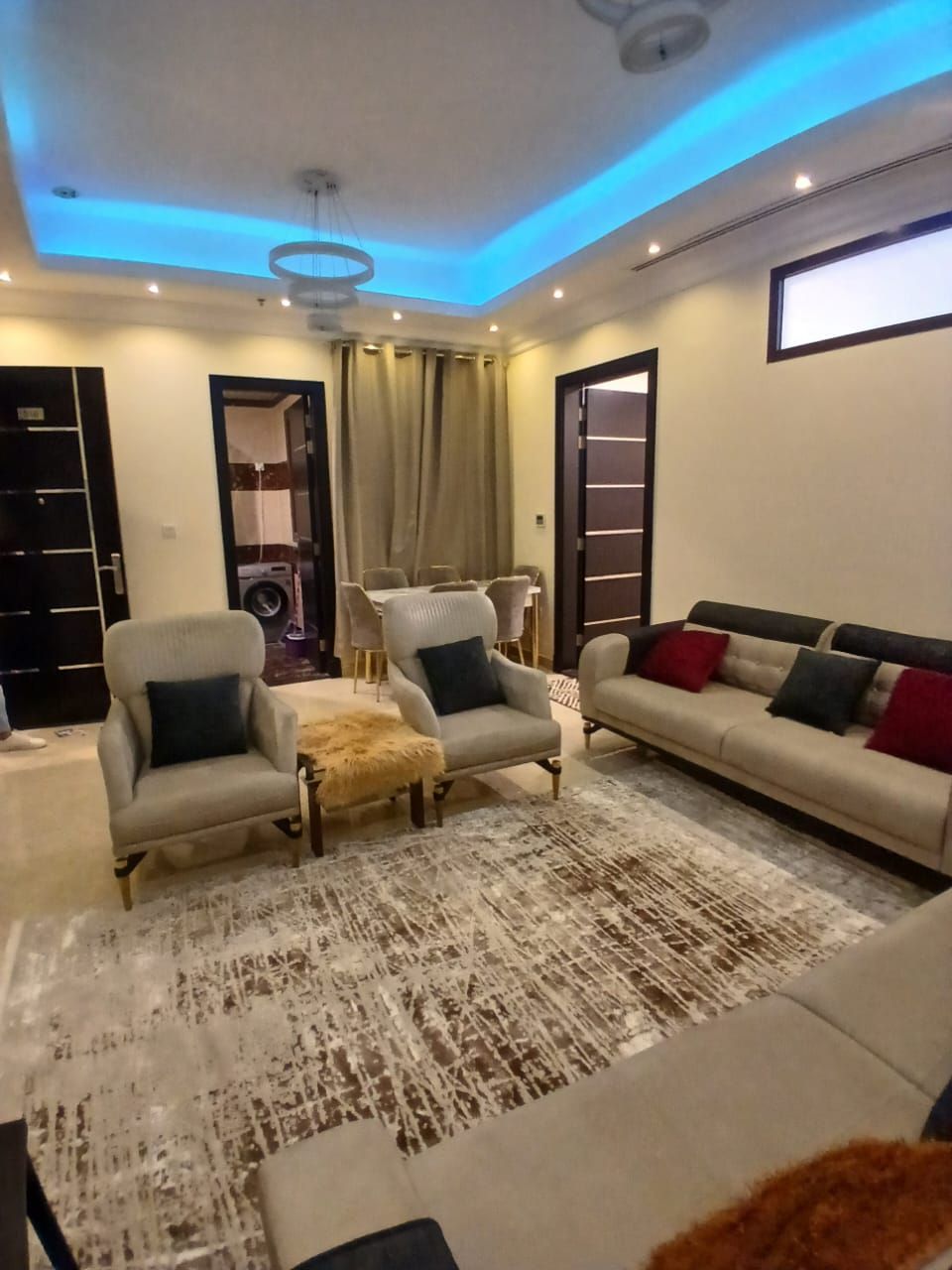 Furnished 3 - bedroom apartment with living room in Al Rawdha 3, first occupancy with new furniture. Prime location near Bahr Al Emarat Restaurant and easy access to Dubai and Sharjah. Includes 3 fully equipped bathrooms, fitted kitchen with all appliances, comfortable living room, and private parking. rent AED8000 including utilities and internet, ready to move in