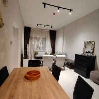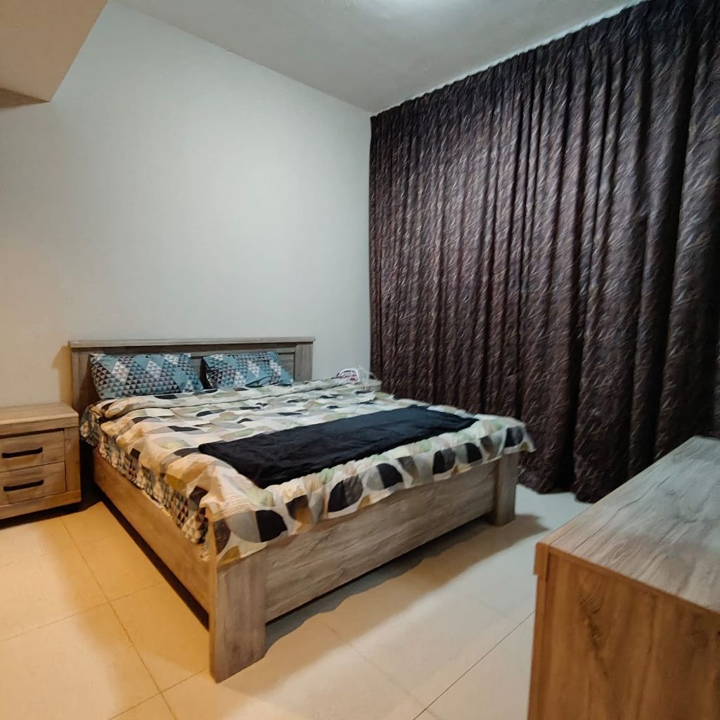 Furnished apartment for rent in Ajman Two bedrooms and a living room in a luxury tower Prime location directly on Khalifa Street Close to Gulf Bridge Modern and clean furnishings Electricity, water, and internet included Price AED6000