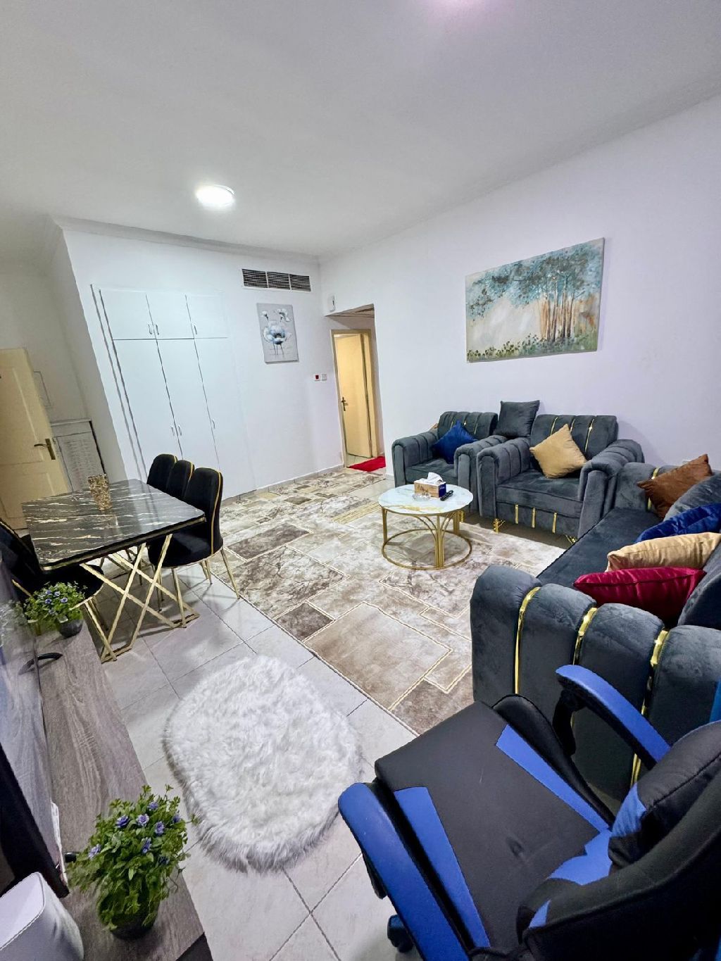 Furnished room and hall Furnished Al Al Nuaimia area 2 King Faisal Street behind the Pearl of the Gulf Large area and new furniture Second resident Required rent of 4200 inclusive of all services And it is required to secure 500 refunders upon exit Available on the 15th for booking same photos