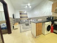 Furnished one - bedroom apartment for rent in City Towers - Khalifa Street, Ajman. Prime location next to Safeer Mall and opposite Grand Mall. The apartment is clean and well - furnished, has two bathrooms and a balcony, and is suitable for individuals or couples. The price is AED4000 including utilities and internet