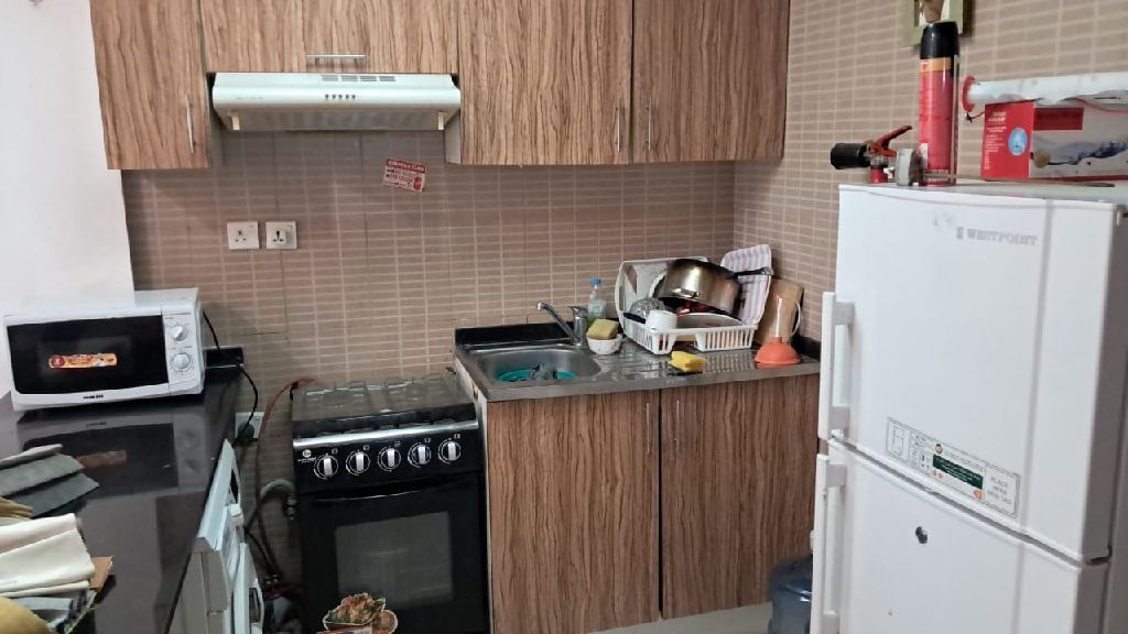 1bhk furniture for rent monthly open view include with balkunh 2 bathroom Ajman city towers 4200 dirhams