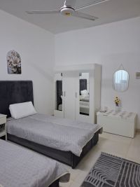 For rent Two - bedroom apartment with a living room - Ajman, Al Jerf 1. fully furnished with brand new furniture - first occupancy. Located behind Manarat Al Iman School, opposite Hashim Mill and Al Hout Mill, close to all services, with easy access to Dubai and Sharjah. Features Two bedrooms, living room, brand new furniture, equipped with kitchen appliances, spacious layout, quiet location. Price
