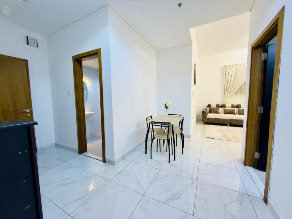 For monthly rent 1 - bedroom apartment with living room Ajman, Al Al Nuaimia 1 Next to Al Ain Markets Opposite Ramez Hypermarket easy access to Dubai and Sharjah 1 - bedroom apartment with living room, fully furnished with brand - new furniture Two bathrooms, central air conditioning, private parking rent AED4500 per month Includes all bills with internet and maintenance, excluding gas Refundable security