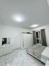 Two bedrooms and a living room in Al Waha, Al Mina Street, next to the fish market. Gym, swimming pool, and free parking. Rashidiya Furnished monthly with super deluxe furniture. Includes bills and internet. Price 7000