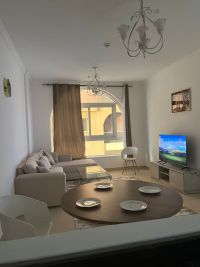 For monthly rent in Al Yasmin Towers, opposite City Centre Ajman a one - bedroom apartment with a living room, two bathrooms, and a balcony. The apartment is brand new and furnished, and includes parking. The rent is AED5000 with a AED1000 security deposit. The location is prime and close to all amenities. Features include central air conditioning, private parking, a side view, and the price includes