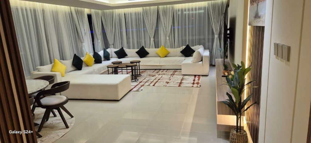 Furnished apartment for rent in Tower Residence on Ajman Corniche. A prime location directly overlooking the Corniche, situated in a prime residential area for upscale families, with all amenities conveniently located near the tower. The apartment features two bedrooms, a spacious master bedroom, and three bathrooms with modern finishes, ensuring optimal comfort and privacy. It is fully furnished