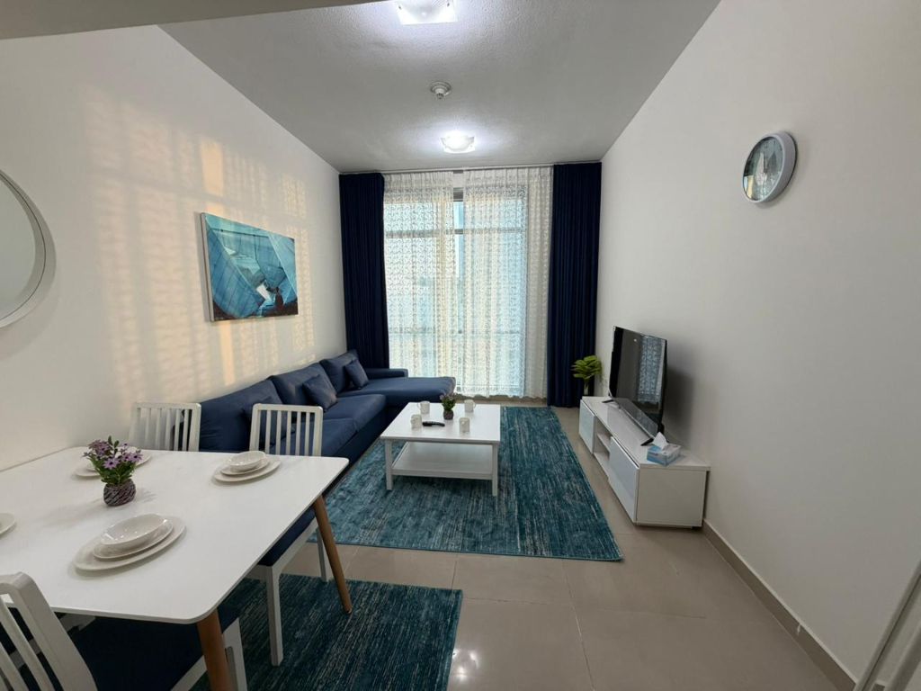 Furnished one - bedroom apartment for monthly rent on Ajman Corniche First occupancy Al Nakheel 2 Al Ittihad Tower Opposite Bahi Ajman Palace Hotel and Fairmont Hotel Very clean furnishings First occupancy All bills included electricity, water, internet, sewage, and parking Very spacious apartment 2 bathrooms, separate kitchen Very large living room Full sea view For inquiries, please call