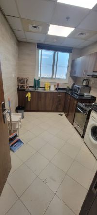 One bedroom, living room, two bathrooms, and a balcony with a sea view are available for monthly rent in Ajman, Al Waha Towers, Rashidiya 1, Al Mina Street, opposite the fish market. The property includes recreational facilities such as a swimming pool, gym, and KidZaria. It boasts a prime location close to services and a bus station, with easy access to Sharjah and Dubai. The rent of AED4500 includes