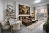 Two bedrooms, a living room, a balcony, and three bathrooms Furnished apartment for monthly rent in a new building Prime location on Ajman Corniche, next to the Corniche Towers, in a very vibrant area easy access to Dubai and Sharjah rent AED6000 inclusive of utilities and internet Deposit AED1000 cash Available from the evening of the 25th For booking and to view photos, please contact us directly