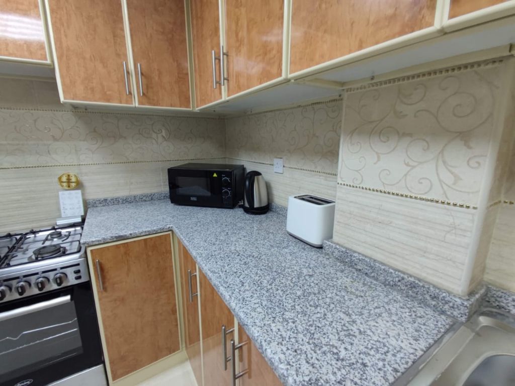 One bedroom, living room, and two bathrooms available for monthly or yearly rent in Ajman - Al Rawda 2 Available starting today Close to Emirates Markets, Nesto Hypermarket, and a mosque fully furnished with all household appliances and electrical goods rent includes all bills electricity, water, and internet monthly rent AED4200 Security deposit AED500