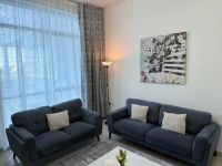Furnished one - bedroom apartment for monthly rent on Ajman Corniche. First occupancy. Al Nakheel 2, Al Ittihad Tower, opposite Bahi Ajman Palace Hotel and Fairmont Hotel. Very clean furnishings. First occupancy. Price includes all bills electricity, water, internet, sewage, and parking. The apartment is very spacious, with a master bedroom, two bathrooms, a separate kitchen, and a very large living