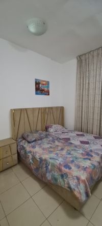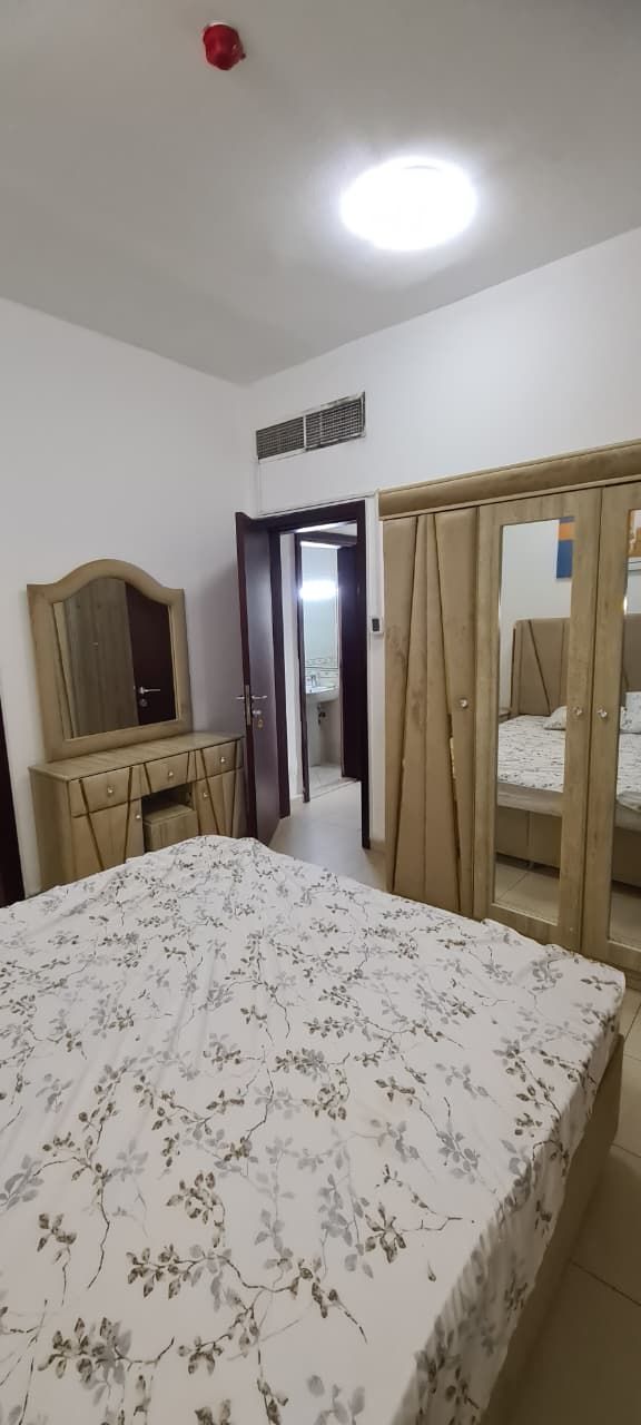 Two - bedroom apartment with a living room available for monthly rent in City Towers, Ajman. Includes utilities and internet. Features a closed kitchen, spacious layout, new furnishings, and a view of Sharjah. rent includes all utilities except gas. Security deposit refundable upon checkout. Located directly on Sheikh Khalifa Street, near Ajman Corniche, and next to Safeer Mall