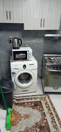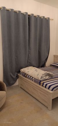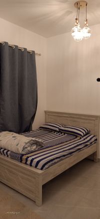 One bedroom and living room for monthly rent in Ajman, Al Bustan, next to the bus station. First occupancy. 3800 + 500 security deposit. Free dirt parking