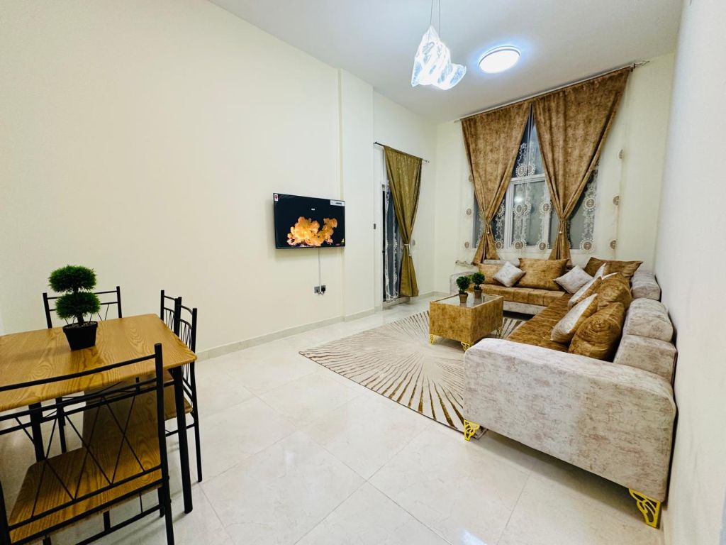 A fully furnished 2 - bedroom apartment is available for rent in Al Naeemia 2, Kuwait Street, in a prime location near Safeer Mall and essential amenities. The apartment features a spacious living room, fully equipped kitchen, and modern bathroom. All necessary household appliances are included, and utilities along with internet are covered in the rental price. Ideal for families or individuals seeking