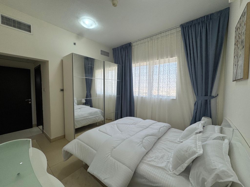 Furnished 2 - bedroom apartment with a living room for monthly rent in Ajman, Al Jerf 2, Yasmin Towers, opposite City Centre Ajman, and close to the Dubai and Sharjah exit. Second occupancy, spacious, master bedrooms, large separate kitchen, 2 bathrooms. All bills included (electricity, water, sewage, internet, gas, parking) and AC is free 24/ 7. rent AED6500/ month. Contact